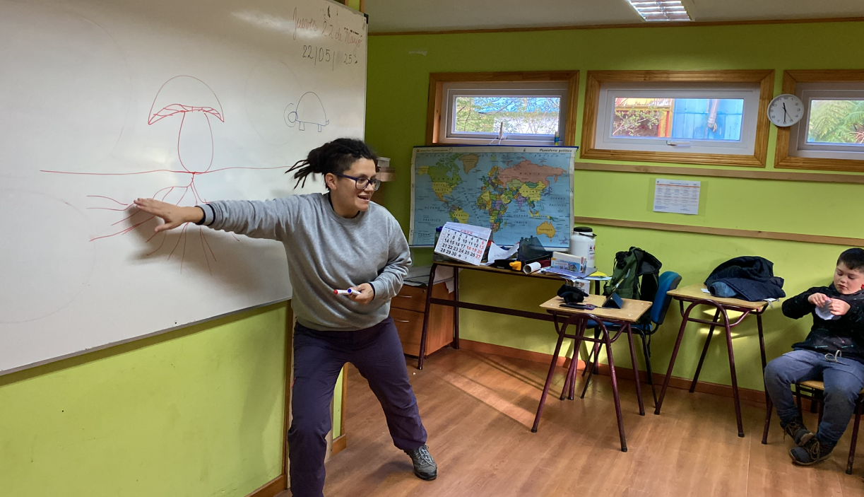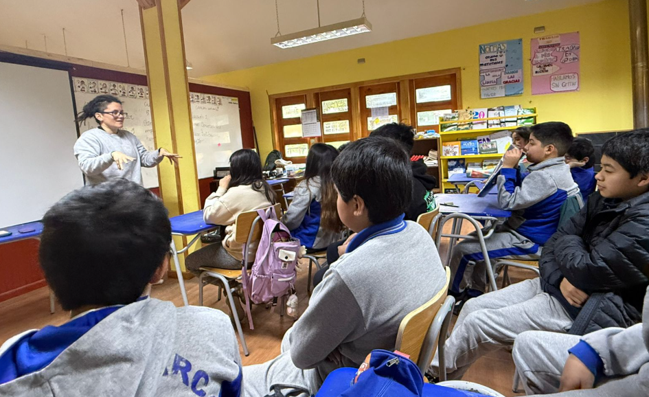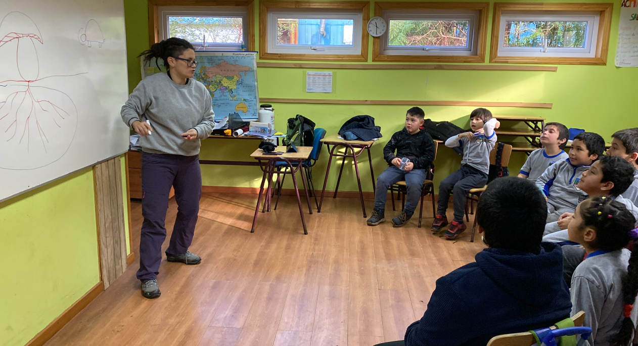 Se realizan charlas con los alumnos de la escuela Amanda Labarca previa a la salida a terreno para la experiencia Fungi.