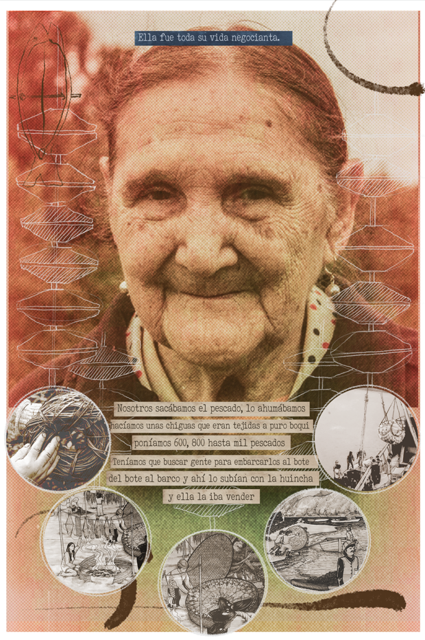 La abuelita Nena es matriarca de la familia más numerosa de Marín. En un comienzo realiza trabajos domésticos de cocina y lavandería, para luego dedicarse a la pesca artesanal. Elena fue una gran negocianta y tesorera de varias organizaciones comunitarias, viajaba a Llanquihue a vender pescado ahumado en grandes canastos de boqui. Dedicada también a su huerta, sus animales y al oficio de tejedora.