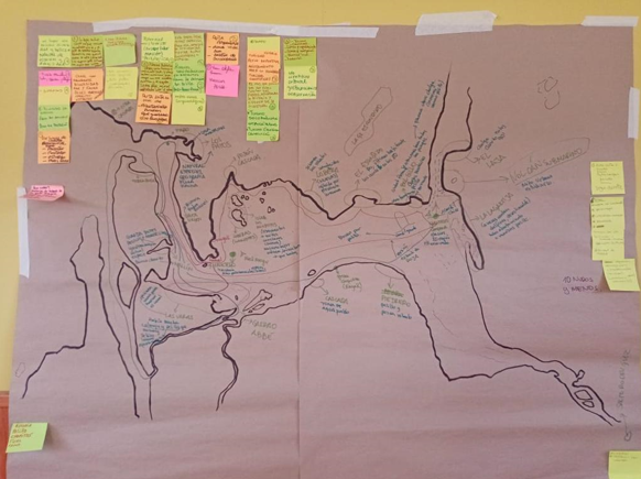 Para levantar la información realizamos tanto una cartografía como una navegación participativa.