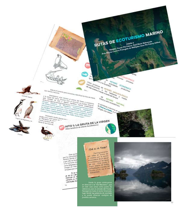 Extensión naútica de la Ruta Patrimonial. La Ruta de Ecoturismo marino es una colaboración con la Fundación Aysén mira el mar, para poner en valor tanto el patrimonio natural como cultural asociado a los procesos de asentamiento que hubo en el interior del fiordo, tanto de los pueblos originarios como aquellos que fueron parte de la fiebre del pelillo generando poblaciones efímeras al interior del fiordo. Este proceso de salvaguarda patrimonial generó una bitácora como material de apoyo a los guiados naúticos del fiordo.