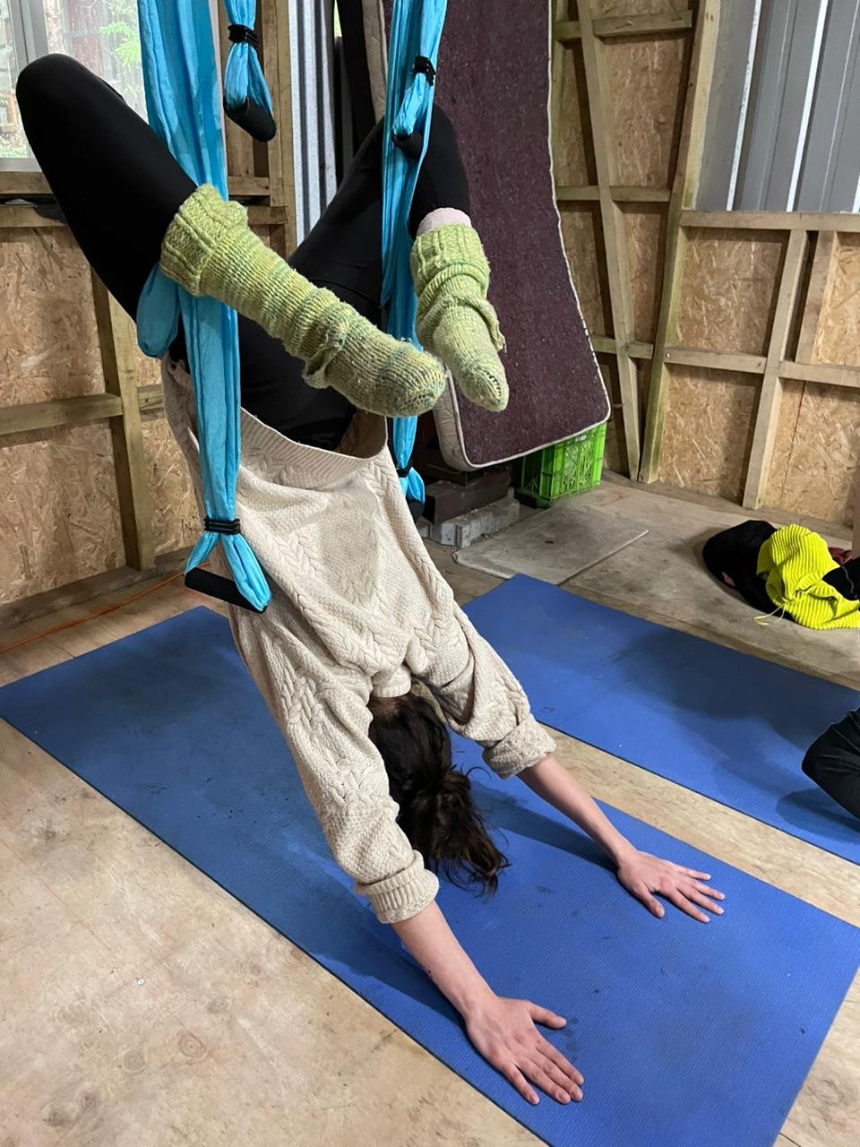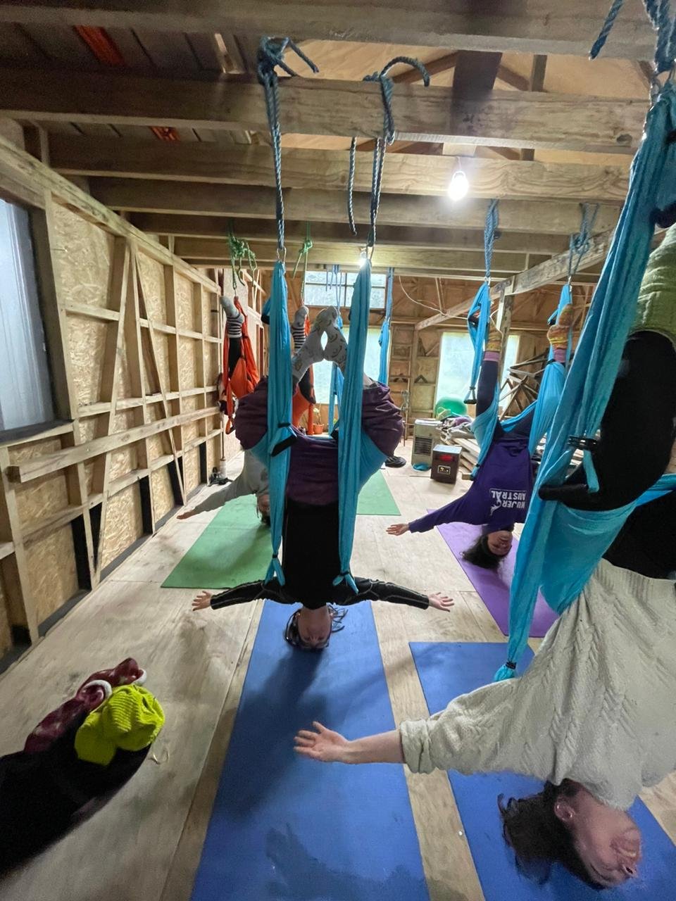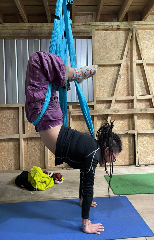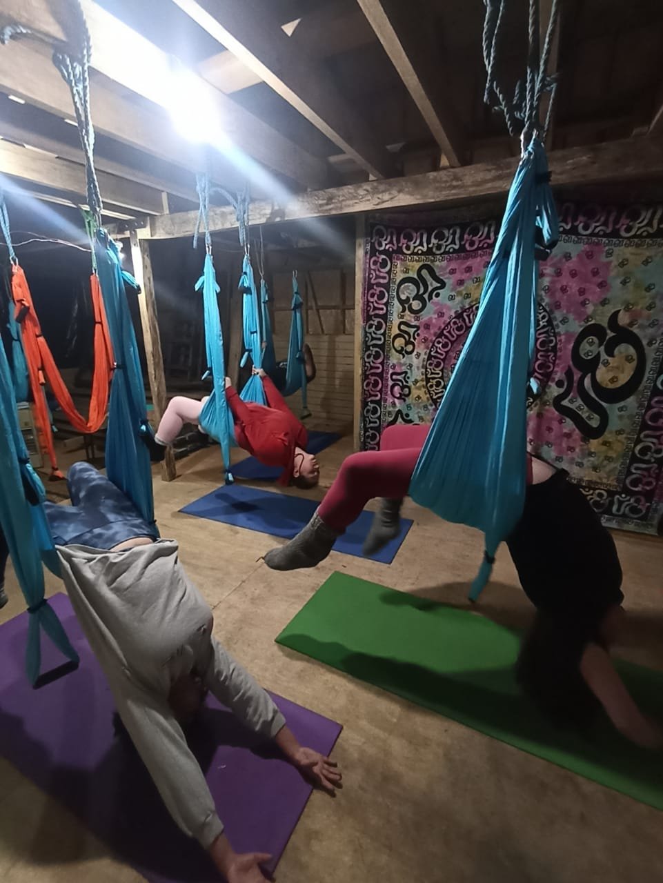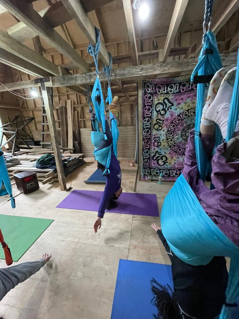 Las clases se enfocaron en el reconocimiento del columpio aéreo; conocer la estructura y componentes (estribos, hamaca, mosquetones, etc.) y su uso adecuado para prevenir lesiones y adquirir conciencia corporal. Se ejercitó la respiración en el columpio y técnicas básicas (subir, bajar, moverse de manera segura) posiciones y movimientos (estáticos y dinámicos) y secuencias y coreografías simples.